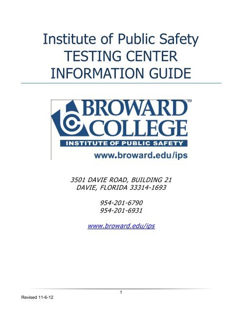 Public Safety Building - Training Division Classrooms 2601 West Broward Blvd.